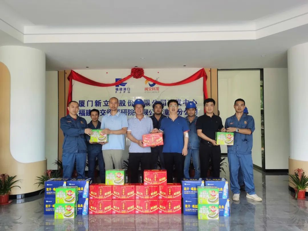 厦门新立基党委副书记、工会主席吴悦荣带队到权属企业上海闽强船舶服务有限公司开展“送清凉”高温慰问,为驻外机构职工送去公司的关怀,并送上凉茶、清凉油、风油精等防暑降温物品。