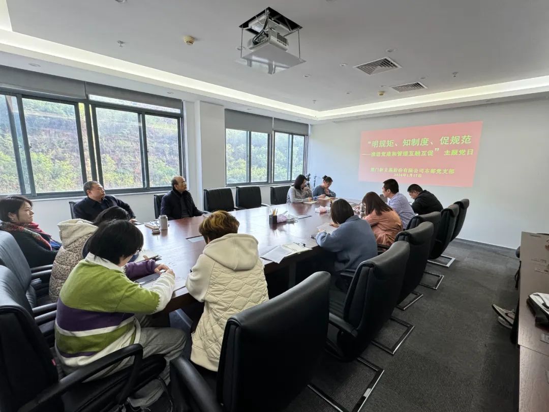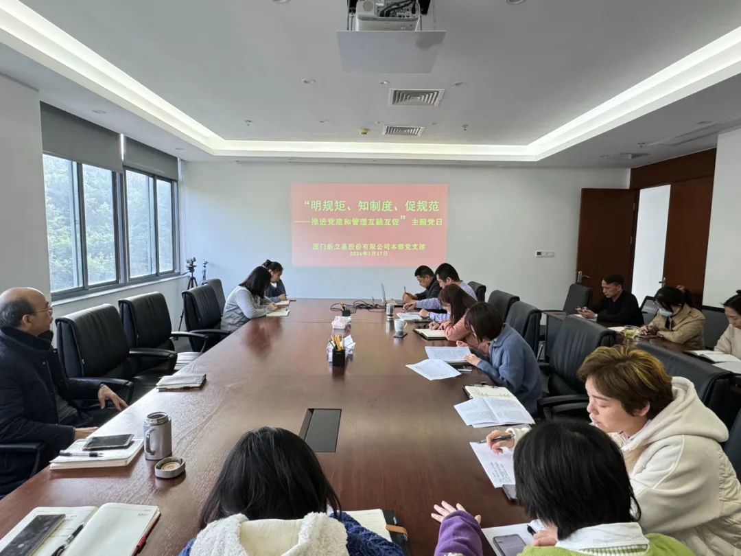 为深入学习贯彻习近平新时代中国特色社会主义思想和党的二十大精神,紧扣公司高质量发展目标,推动党建和管理的双向融合,有效提升内控合规管理水平,1月17日,厦门新立基本部党支部组织党员开展“明规矩,知制度,促规范——推进党建和管理互融互促”主题党日活动。