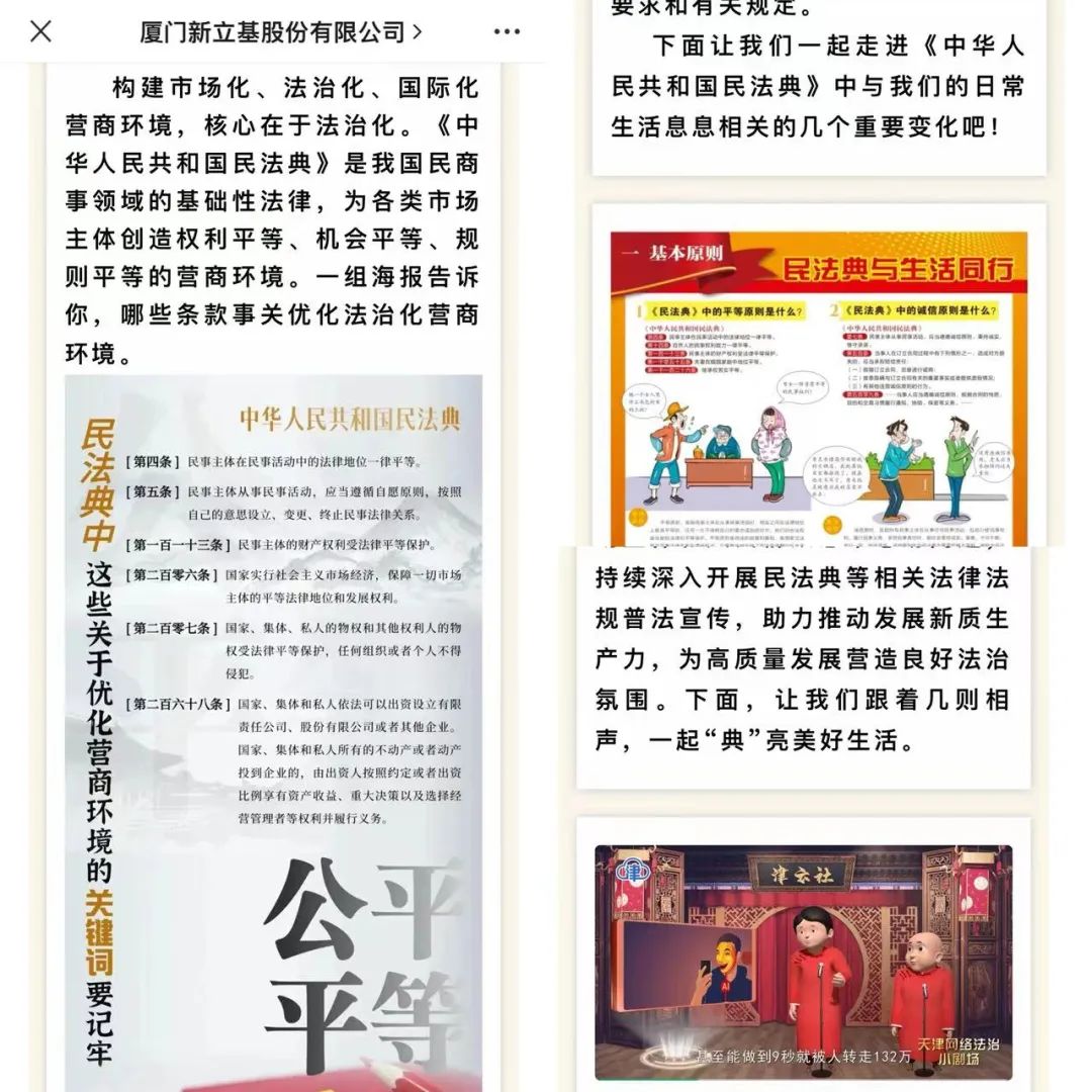 民法典宣传月|厦门新立基各权属单位积极开展“法治是最好的营商环境”主题宣传活动(一)