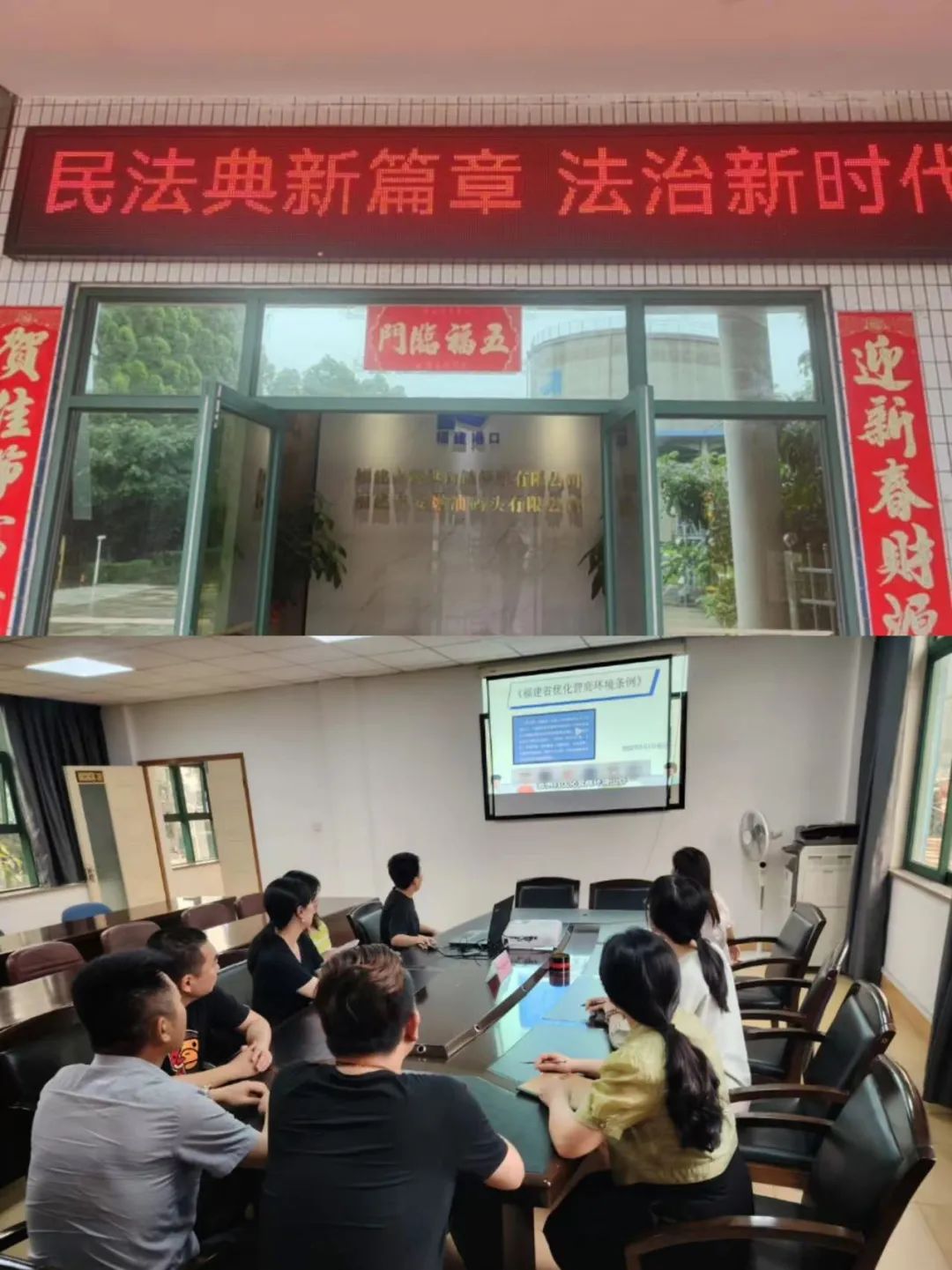 江西新立基组织职工参加“浔阳区公安法律服务进园区进商会进企业”活动与区司法局组织的九江市2024年民法典宣传月集中宣传暨浔阳区“千所进万企”优化法治化营商环境专项普法活动。法务办在公司群里不定时开展民法典相关知识及条例宣传教育,结合安全生产月向员工普及了民法典中关于应急管理、安全生产、合法经营的相关法律知识,并通过知识小测验的形式,加深了员工对民法典的认识和理解,营造了公司良好的遵法学法守法用法的氛围。