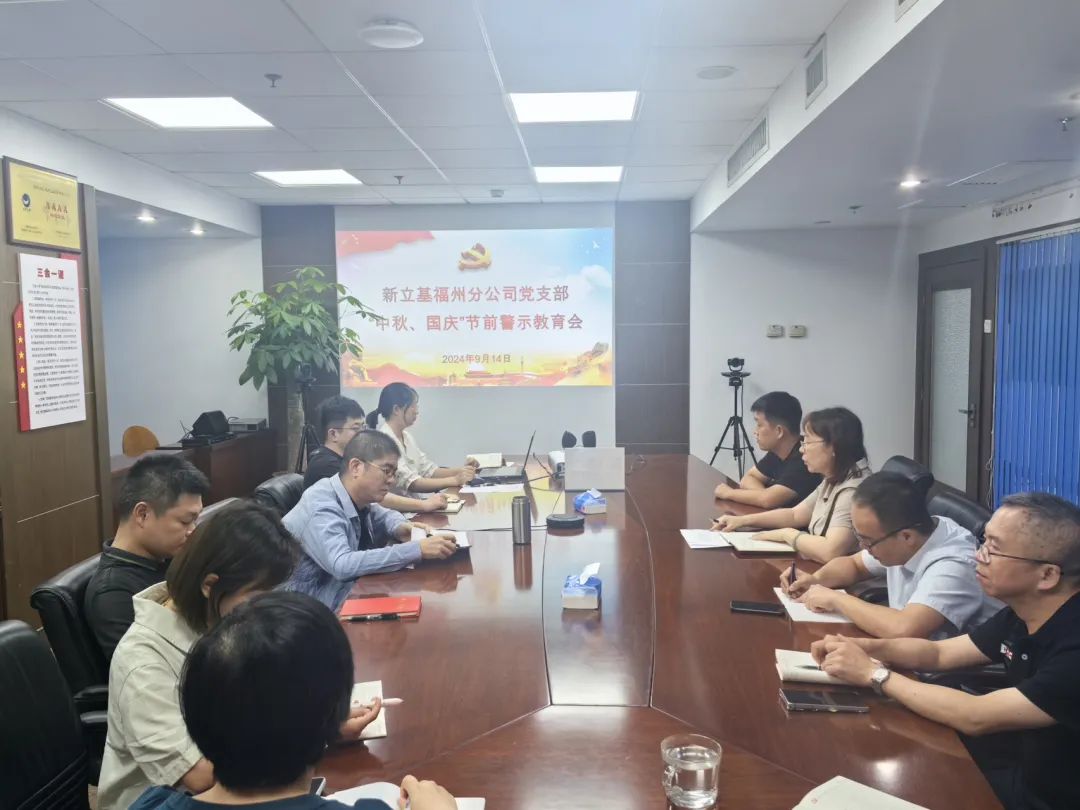 新立基福州分公司党支部召开“中秋、国庆”节前廉政警示教育会,进一步巩固深化党纪学习教育成果,增强党员干部廉洁自律意识,加固拒腐防变的思想防线。