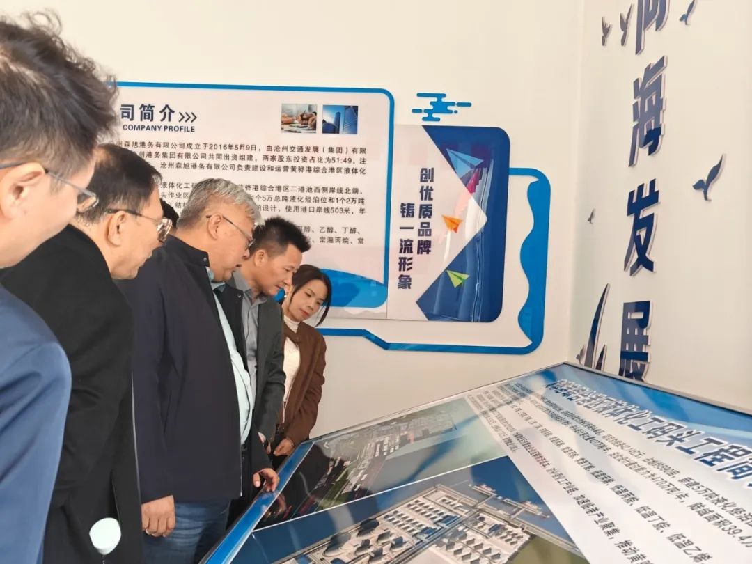 沧州交发集团建设管理部部长王文强、津汕分公司总经理张跃峰、森旭公司董事长鲍卫国、实业公司总经理焦伟林、福州港务集团生产经营部经理顾翔、福州港马尾港务副总经理尤尔粟、厦门新立基华北大区总经理林长贞及相关负责人参加了交流洽谈。