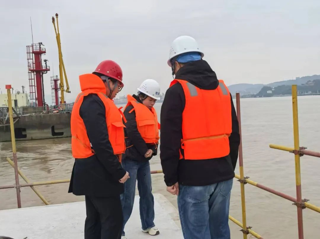 在吉安码头,林影一行深入码头施工现场,实地查看了吉安码头碰撞修复施工情况,认真听取了公司2024年企业经营及码头碰撞索赔工作最新进展汇报,对下一阶段重点工作提出指导意见: