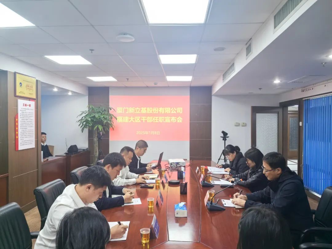 1月8日下午,厦门新立基党委书记、董事长林影,党委副书记、总经理连晓琪一行莅临福建大区,宣布新一届班子任命决定,福建大区全体新班子成员及全体员工参加会议。