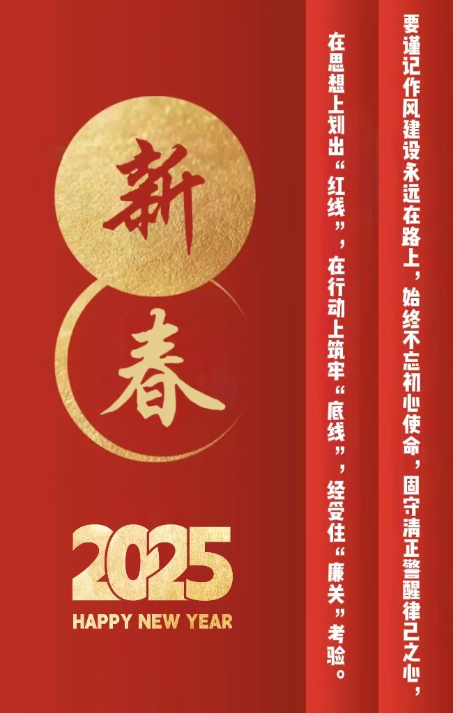 为不断落实中央八项规定及其实施细则精神,严防节假日期间“四风”问题反弹,厦门新立基纪委特发出廉洁提醒:全体干部员工在节庆之余,应严格遵守中央八项规定精神和廉洁自律各项规定,牢记纪律“高压线”、不触制度“红线”、守住做人底线。在模范遵守纪法的同时管好自己的家属和子女,时刻绷紧纪律规矩这根弦,做到守规矩、知敬畏、过“廉”节。最后,恭祝大家新春快乐、身体健康、阖家幸福、好运连连!