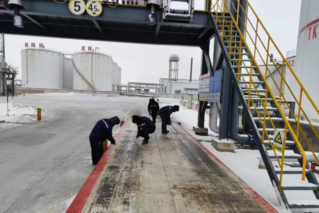 春节期间,西北大区新疆新立基迎来了低温降雪天气,为保障库区及周边道路的安全畅通,公司迅速组织员工开展扫雪除冰工作。在零下的寒风中,他们身披大衣、手持工具,不顾寒冷清理积雪,确保装卸车通道、锅炉房和操作间的路面无积冰,设备无隐患,保障库区生产作业正常进行。