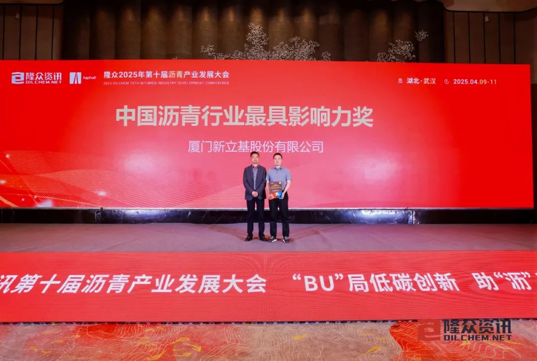 2025年4月9-11日,由隆众资讯主办的2025年隆众资讯第十届沥青产业发展大会于湖北武汉成功召开,球速手机在线官网应邀参加。大会对2024年度中国沥青行业优秀企业进行了颁奖,厦门新立基荣获“中国沥青行业最具影响力奖”,彰显了公司对沥青供应链行业的卓越贡献,获得了业界的高度认可。