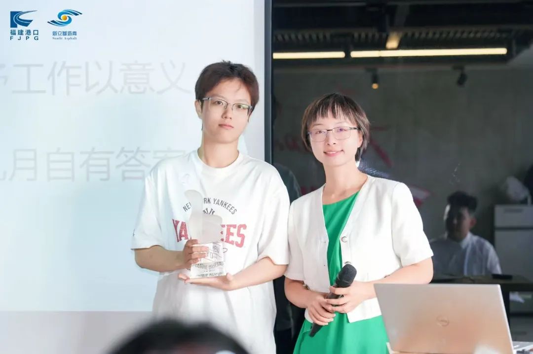 随后,胡蓓向新员工分享了“做三四月份的事,八九月自有答案”的成长感悟,鼓励大家赋予日常工作更深层的意义:道路建设既关乎“国之大者”,也牵动着教育公平等民生福祉,唯有笃行不怠,方能收获时间的复利。在企业文化解读环节,她邀请全员共同起立,齐声诵读“闯者善行——新立基企业精神诠释”,并详解公司logo的深意:中间的太阳象征光明与希望,承载着简单真诚的初心;上下延伸的道路则寓意公司走过的发展历程与面向未来的前行方向,让新员工对企业理念有了更鲜活的认知。