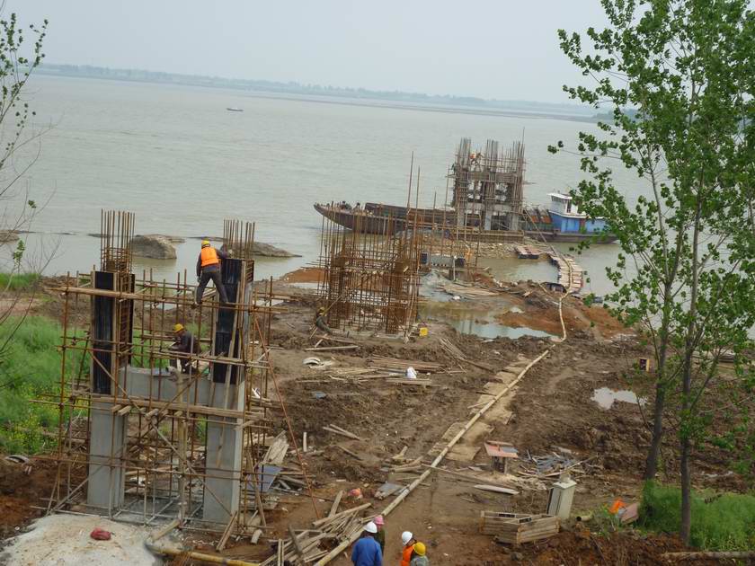 设计方面,设计院于上周二将码头钢引桥图纸(白图)提交给公司技术负责人,并已分发给施工单位和监理单位,施工单位开始下料。关于堤坝上的横梁原设计高程比实际地面高程低1.2米的问题,经过技术负责人与设计院反复商讨,设计院于上周日同意修改堤坝上的横梁设计,将横梁和路面整体向上提升1.2米,钢引桥搁置面做相应调整。