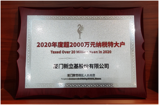 厦门新立基荣获厦门市思明区2020年度纳税特大户称号