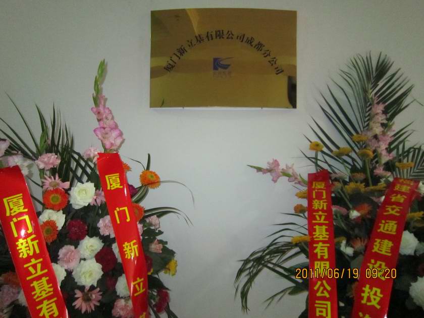 19日上午9点10分在厦门新立基有限公司成都分公司举行了隆重的揭牌仪式。仪式上,福建省交通建设投资有限公司党委书记、厦门新立基有限公司董事长郭辉再一次发表了重要讲话。他说,厦门新立基成都分公司今天挂牌成立,意味着厦门新立基第一个跨省的分支机构在成都正式成立。今天的日子非常有意义,农历“5·18”意思:“我要发!”,成都分公司的发展将是新立基公司发展的重要组成部分,让我们共同努力,为投资公司“十二五”的大发展作出大贡献!最后他代表投资公司、新立基公司祝成都分公司开业大吉!祝各位领导、各位来宾、各位职工同志身体健康!工作顺利!万事如意!9点15分在一片掌声及鞭炮声中,厦门新立基有限公司董事长郭辉和总经理朱勇进共同为成都分公司的揭牌。