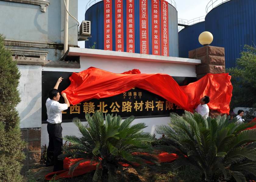 要打造优质高效的海西沥青供应链,仅仅在省内,资源有限,市场更有限,只有走出去,到中部内陆省份开拓市场,才能真正实现这个目标。如何走出去?投资公司的班子在思考,厦门新立基公司的班子也在冥想。2009年8月至9月,厦门新立基公司领导在江西、湖南、湖北等内陆省份不断进行调研,当得知江西赣北公路材料有限公司股东欲作股权转让的消息后,立即回来向投资公司领导作汇报,两级班子形成了共识并立即行动起来。一方面交通集团领导及有关部门领导、投资公司、新立基主要领导带队几次赴九江考察;另一方面做好该公司的资产评估等有关材料上报交通集团和国资委研究批复。经过近一年的努力,股东方、交通集团等上下左右终于达成了一致意见于2010年8月8日在福州举行了股权转让签约仪式。签约仪式后的第四天即8月12日,由福建省交通建设投资有限公司控股的新的江西赣北公路材料有限公司举行了隆重的揭牌仪式。