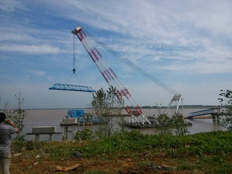 本次安装工程使用了200吨起吊的大浮吊船和70吨的吊车各一个。此次钢引桥架设工程的进行,增快了公司整体建设的进度,公司石化物流码头沿岸及隐蔽工程的结束,12月份将惊醒趸船与钢引桥的连接。