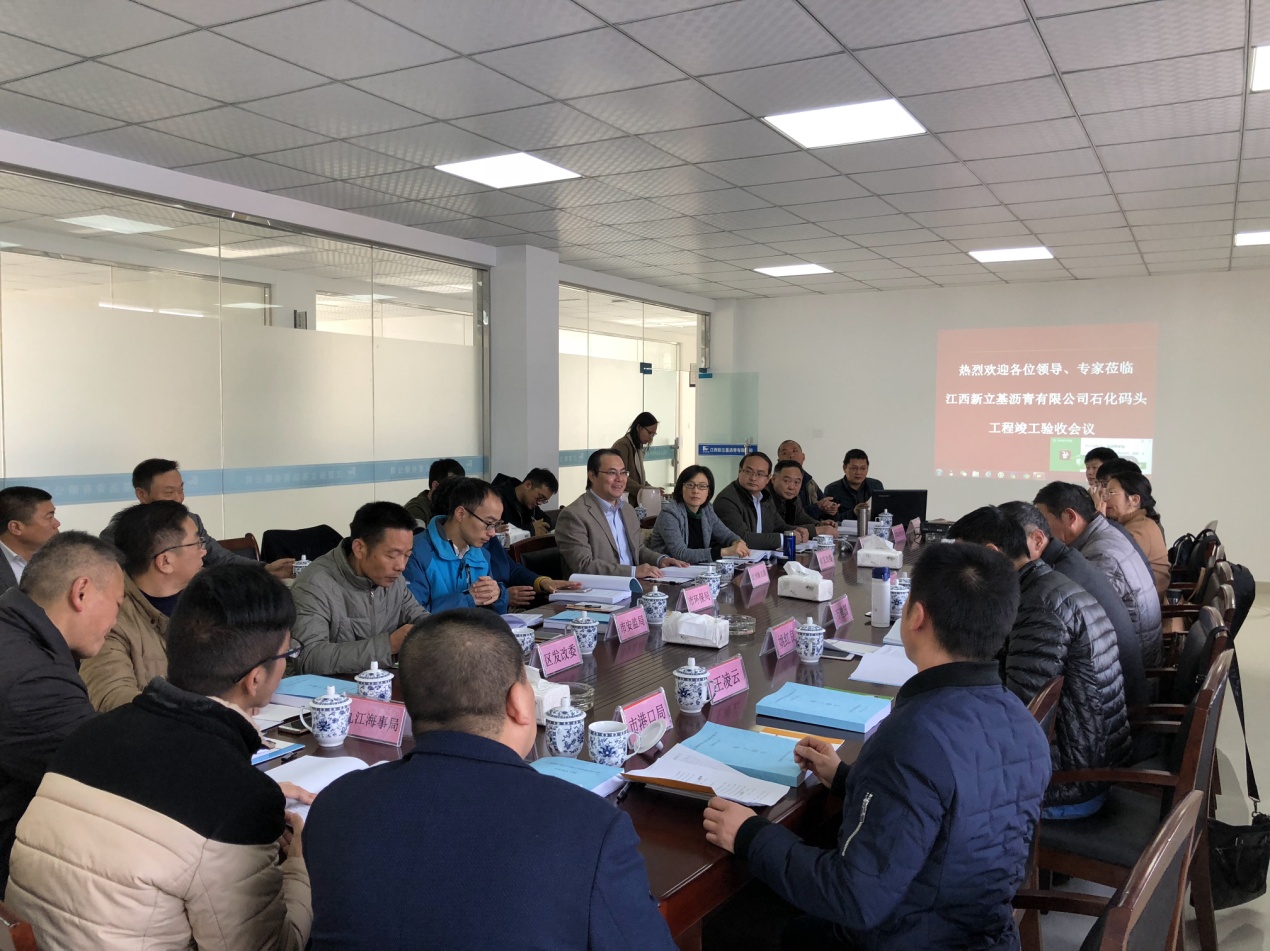 ▲ 2017年12月8日, 福建省交通建设投资公司党委书记、董事长朱勇进到江西新立基有限公司参加石化码头验收会议。会上,由九江市港口管理局、九江海事局、长江九江航道处、港口直属分局及九江市、区各相关职能部门领导和专家组成员组成的工程委员会,对投资公司所属江西新立基沥青有限公司石化码头的安全、环保、消防、劳动保护等方面的设施设备进行全面检查验收。经过工程委员会慎重评审,江西新立基沥青有限公司石化码头顺利通过工程竣工验收。