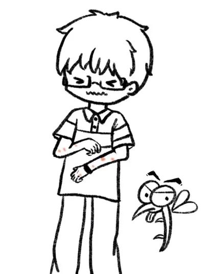 手臂上留下了参观的痕迹——很多的蚊子包。