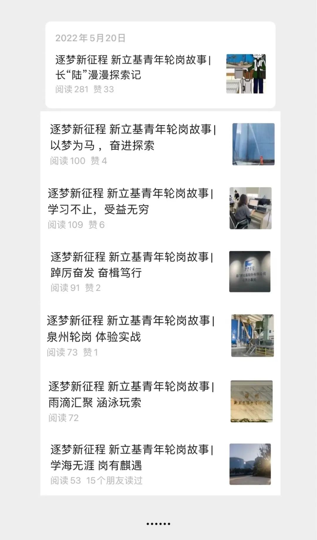 为了让新员工尽快熟悉公司生产业务,厦门新立基于2022年3月确定了轮岗交流的目标与计划。以“逐梦新征程,新立基青年轮岗交流”为主题,将新员工输送至全国各个分公司、办事处、生产基地,打破地域限制,推动新员工跨区域、跨岗位交流新模式,把轮岗过程中学习的新知识、新技术、新工作理念和方法,融会贯通到自身业务领域,在实践中得到进步与提升。自2022年5月开始,公司本部先后组织了7人共12次轮岗交流活动。