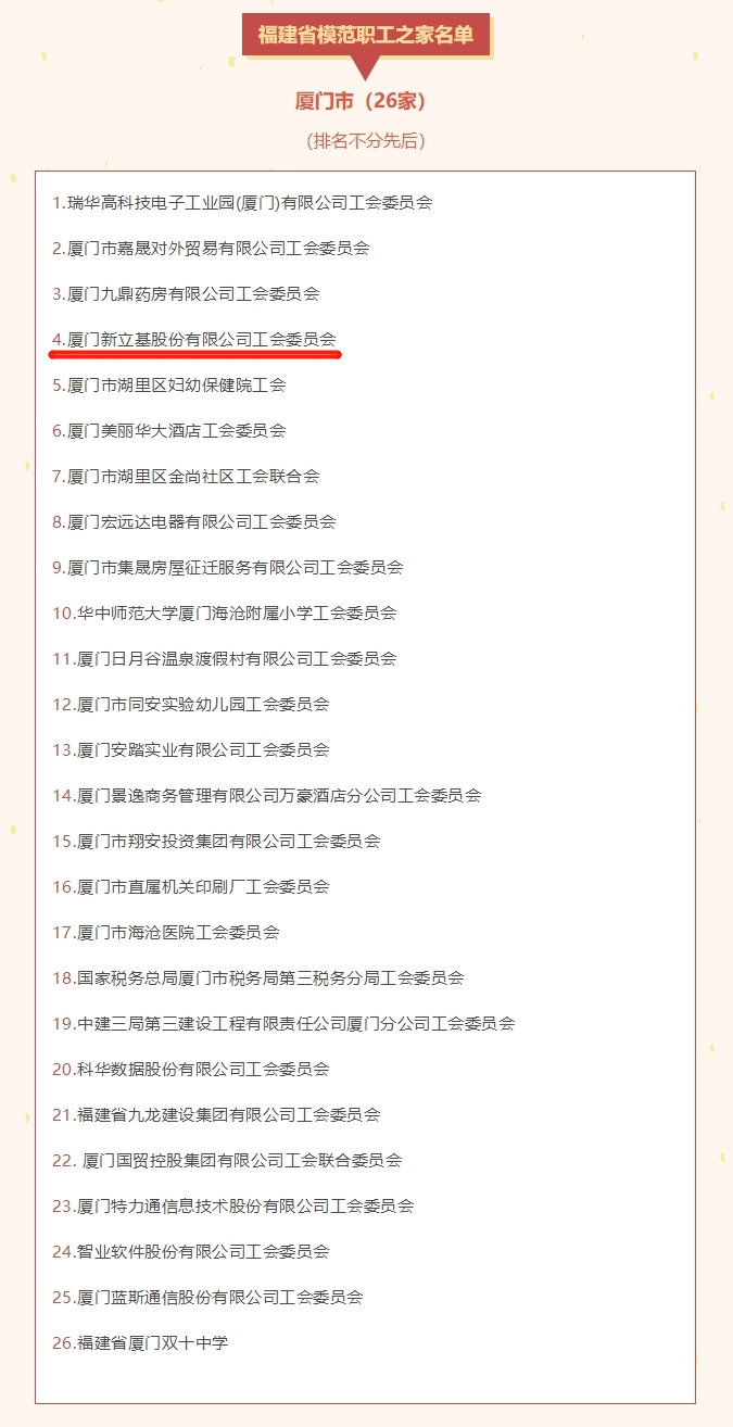 喜报|厦门新立基工会荣获“福建省模范职工之家”称号